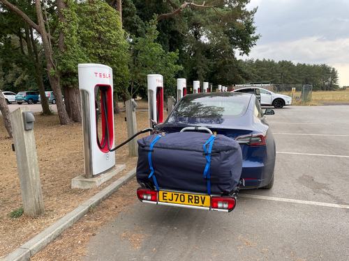 Of course, if you're staying in a campsite, but your car is full of spaniels, boats and outboards, then transporting a tent can be a challenge. I do have a roof rack I can put on the Tesla, but I wasn't too keen on attaching a heavy tent to my glass roof, nor on the likely effects of the resulting aerodynamics on my range.