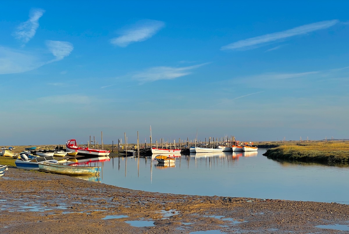 At the other extreme we've been exploring the North Norfolk coast and its challenging tidal currents in our little inflatable boat with its electric outboard, getting up very early to set out with enough water from Morston Quay...