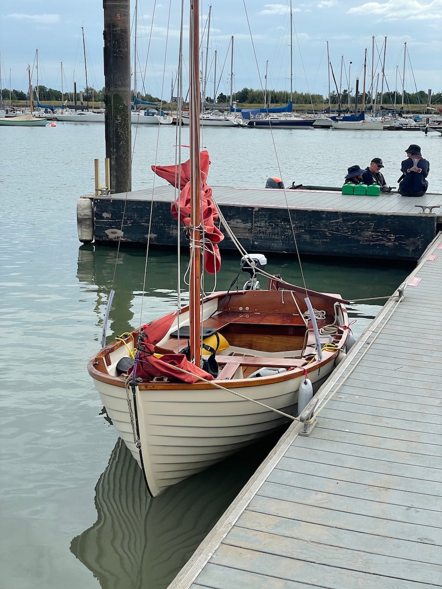 We made it to Brightlingsea, with a little exploration of West Mersea on the way. It's rather fun sailing 12 miles along the edge of the North Sea in a little 12-foot boat. (That's nautical miles, of course, so 13-and-a-bit to you landlubbers.)