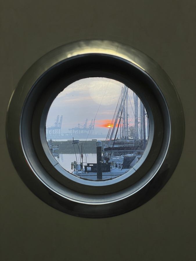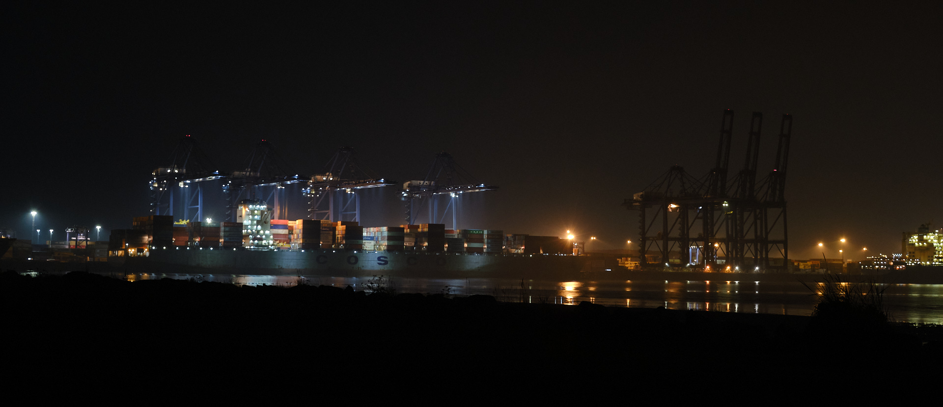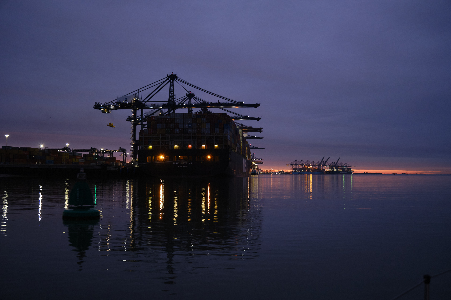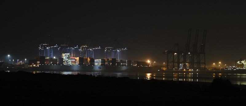 All night, a gentle whirring and clunking reaches across the water, as the port of Felixstowe does its best to keep supplies coming into the country. (And exports going out.)
