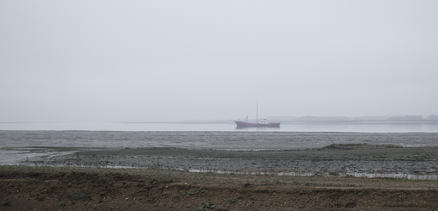At Harwich, a row of lightships is moored in a line across the estuary. I wonder why they're there; they aren't even lit at night. It turns out they are brought here, from all over the country, for servicing. This is the MOT bay. Men go across from the white ship and change the lightbulbs.