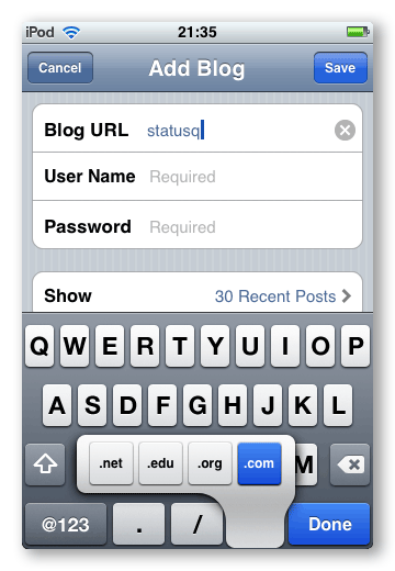 Oh, and while I'm on the subject of iPhone software, here's a handy hint. In the browser and in various other apps there's a special '.com' key which saves you a few keystrokes.