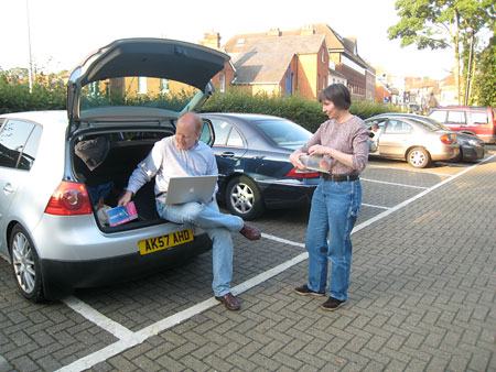 Hap snapped this picture of Rose and me in Tonbridge Castle car park last weekend trying to find somewhere to stay for the night (using a combination of an OS map and a wifi connection to my phone).