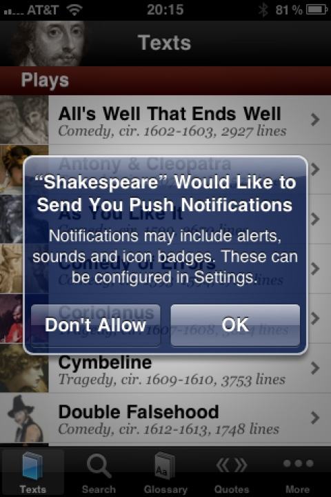 One of the first apps I installed on my first iPod Touch was 'Shakespeare', a conveniently-pocketable version of The Complete Works.