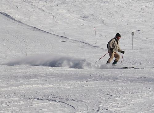 And I looked at the poles and skis he was holding, and sure enough, they were mine. At lunchtime, he must have placed them on the rack next to Geoff's board, and yours truly had walked up and pinched both them and his poles (which were, I'm embarrassed to say, completely different from mine), clamped the skis onto my boots (which fit perfectly) and skied for the whole afternoon without noticing. I'm not sure whether the fact that I was so oblivious to my equipment means I'm a good or bad skier...