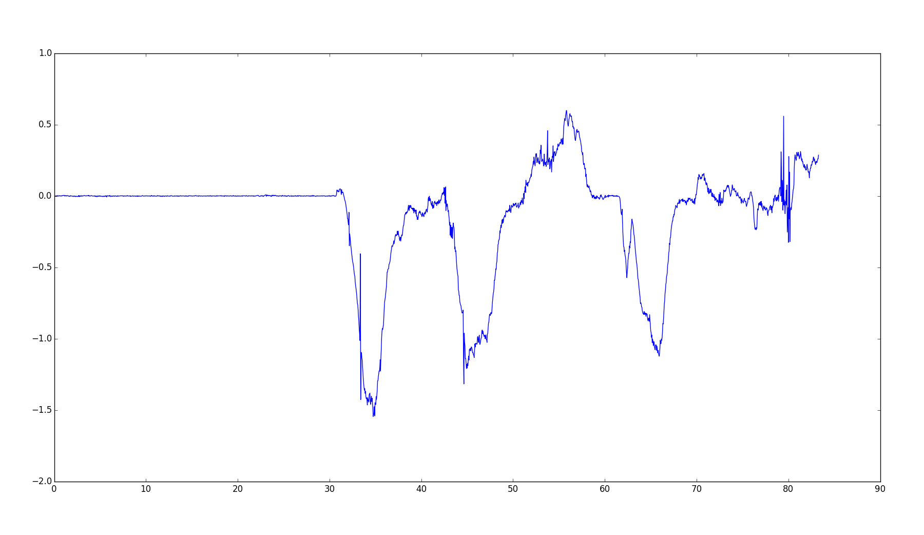 My knowledge of computer vision techniques is about a quarter of a century out of date, so as part of a learning experiment today I was thinking about ways of automatically synchronising the video to the data. The two graphs below show the first minute and a half of a recording, starting with the stationary car moving off and going through a couple of turns. This isn't how we'll eventually do it, but it was a fun programming experiment!