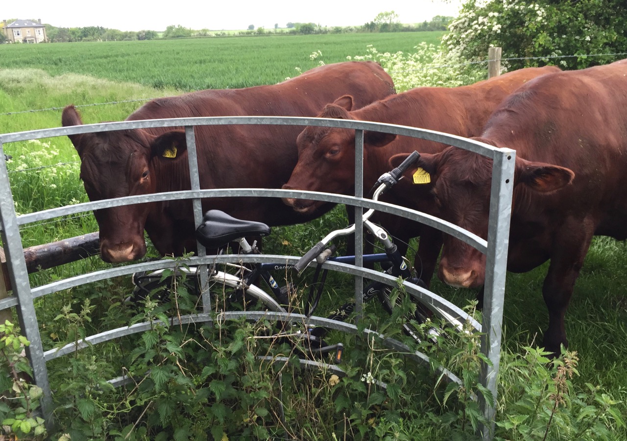 I left my bike parked by a fence while walking Tilly this morning. When I came back, I found some very interested onlookers.