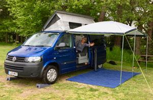 Whether or not you actually have an awning, when the ground gets wet, you'll probably want some sort of a doormat between you and the mud. When we rented a van before buying, it came with some of this permeable rubber mat, which really proved its worth after a few rainy nights, so we asked them what it was and where to get it.