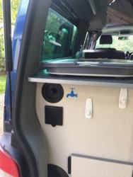 It does mean, though, that filling up with water involves pointing a hose at the inside of your van, and if you're on your own, managing to keep this in the hole and avoid spillage while you go and turn the tap on or off can sometimes be a challenge.