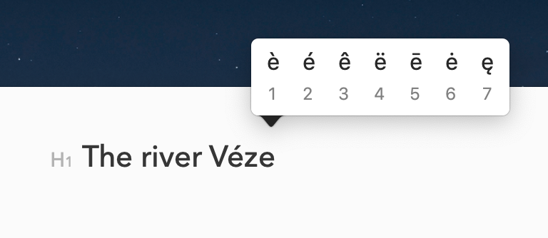 So in case you're of the anglophone persuasion and you've missed it too, let me enlighten you: all you have to do is hold down the appropriate key on the keyboard, and a little menu pops up; you can select the variant you want by clicking on it, or by typing the associated number.