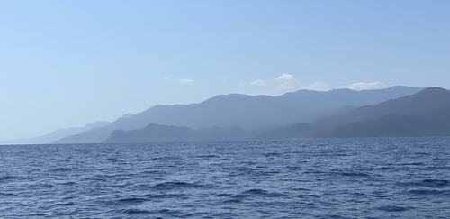 I haven't posted for a while, partly because I'm on a small boat here in the Argolian Gulf, courtesy of my kind friend Philip Sargent. The photo above was taken just a couple of minutes ago.