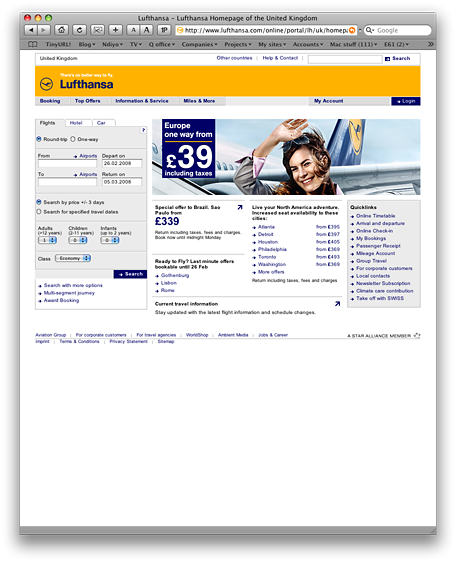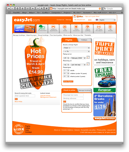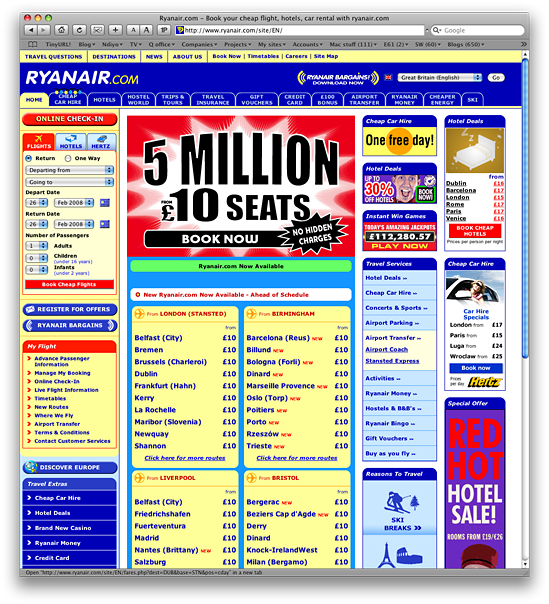 The last one - RyanAir - is, I'm sure you'll agree, quite ghastly. It's the only major site that makes the early days of MySpace look good. So my question is: