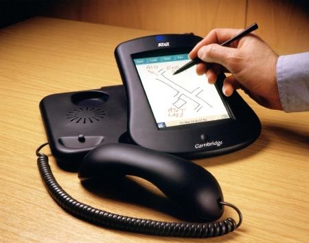 Basically, it was a Linux-based VOIP phone with a VNC viewer and touch screen built in to it, and we built a GUI toolkit which rendered directly over the network in VNC. A standard Dell PC operated as the phone exchange (I wish we'd had Asterisk then!) and also provided the graphics for a variety of specially-written applications. It drove about 100 phones without any trouble, and we used this as our internal phone system in the lab for some time. The plan was to spin out a company based around the technology, but this was 2001, and you couldn't get funding for new companies, whatever you did!