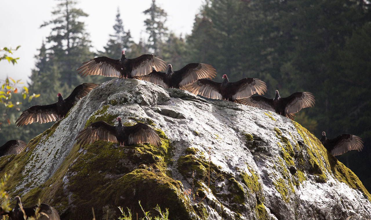 September 19th, 2014 Vulture culture Turkey vultures aren't too keen on being rained on. When the sun comes out, they spread their wings out to dry. On the Rogue River, Oregon, this morning. Posted in Photos 0 Comments Possibly related posts: Some suggested reading: AI and dopamine River lights Meme-busting Too busy living' it... Living in the past