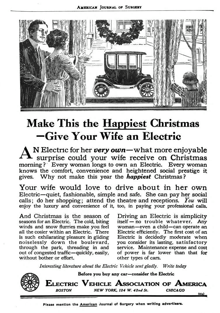 If I get too snooty about how we electric vehicle drivers are living in the future, you can remind me of this. An advertisement from 1912.