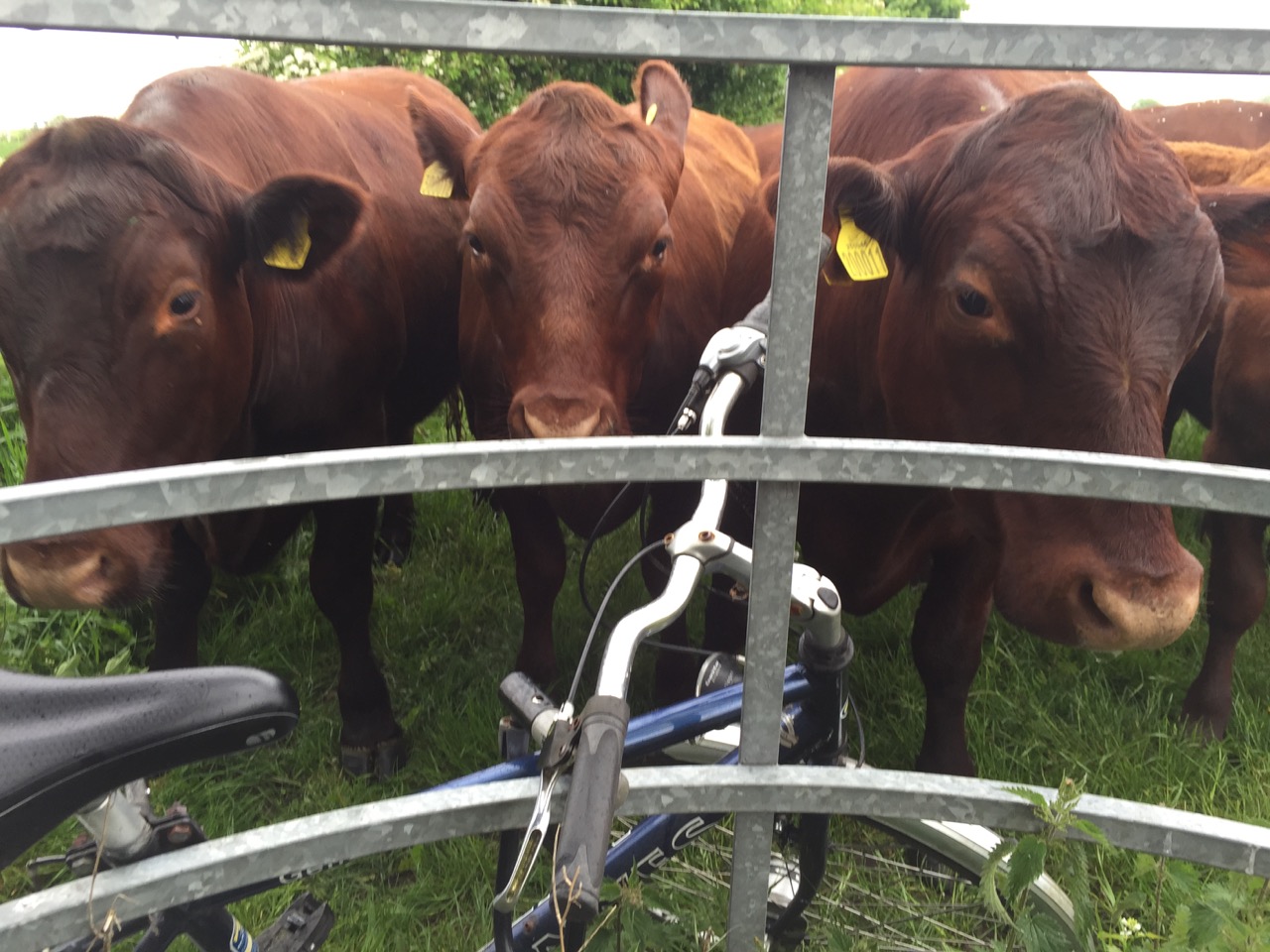 I left my bike parked by a fence while walking Tilly this morning. When I came back, I found some very interested onlookers.
