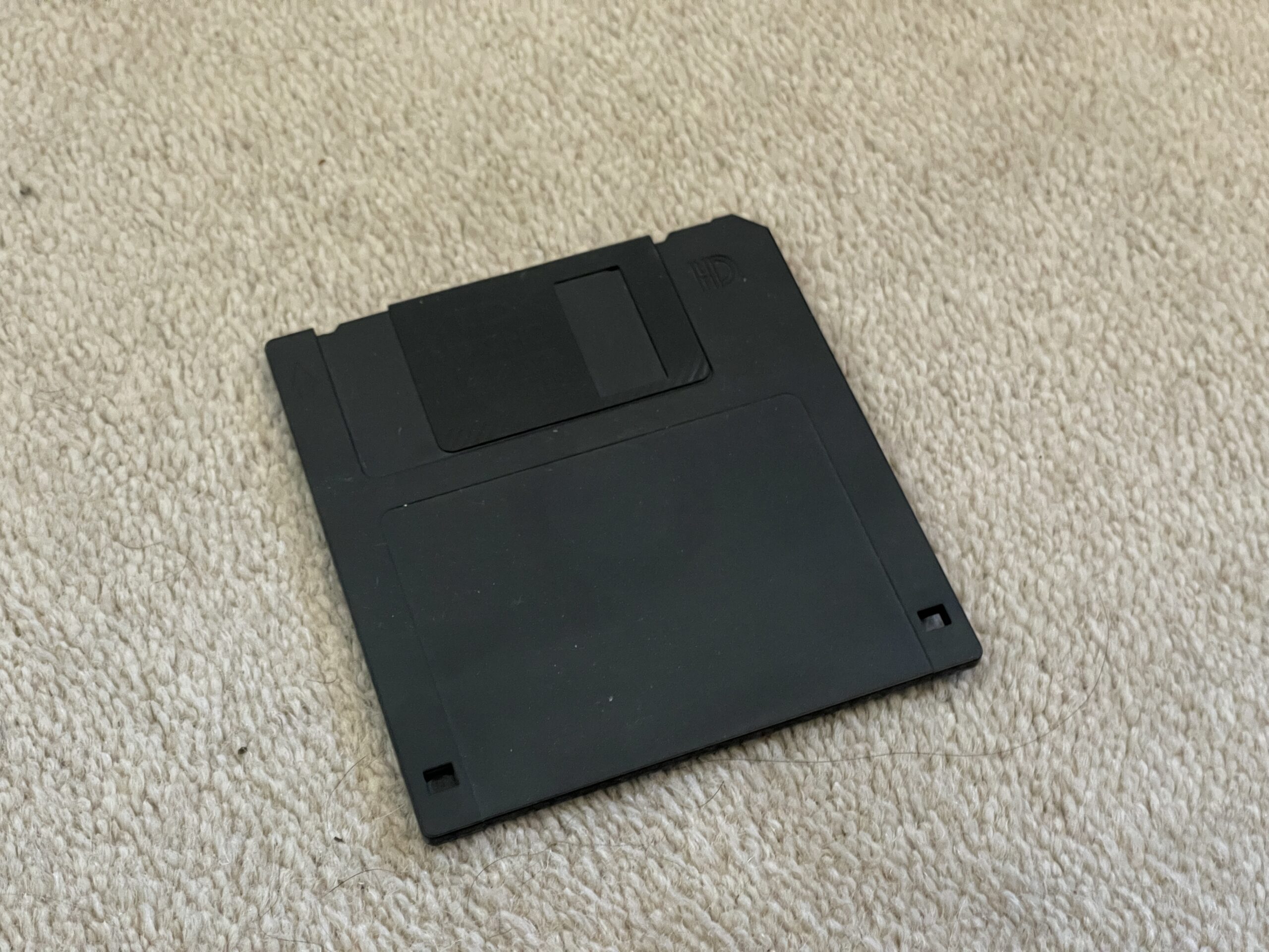 Also in the same drawer was a floppy disk, which holds around 1.4MB. (I used to boot my first Linux system off one of these.)