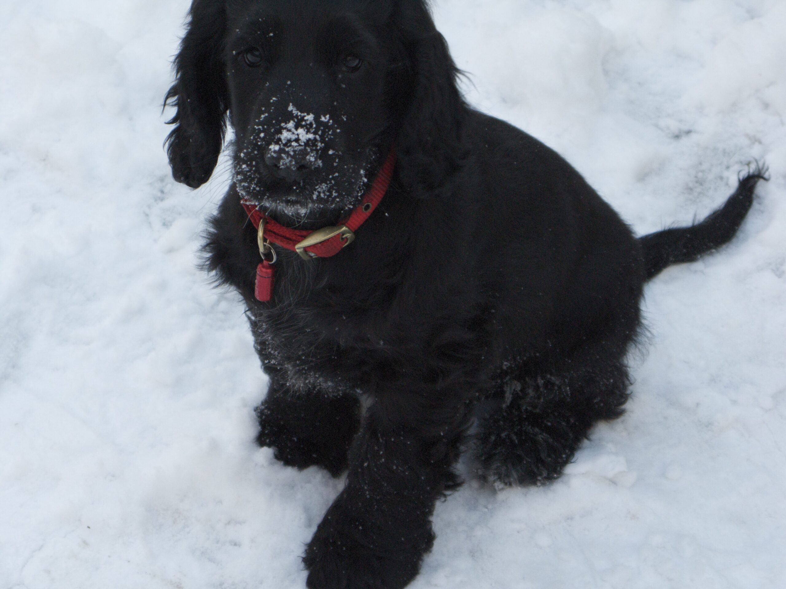 I was allowed to go out in the big wide world for the first time yesterday, and it’s a very strange place – all white and cold! But I can bite lots of it, so that’s good.