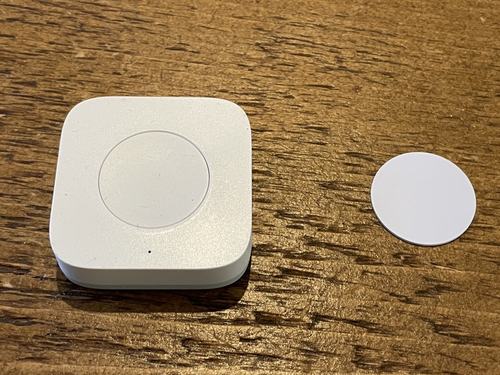 A Xiaomi Zigbee button on the left; one of my NFC tags on the right. The NFC tag is an inch in diameter.